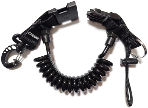 Elastisches Spiralkabel für Taucherlampen, Kameras und Zubehör. Verhindert, dass Ausrüstung verloren geht oder im Kelp hängt. In Kapstadts Kelp-Wäldern ein sinnvolles Sicherheitszubehör.